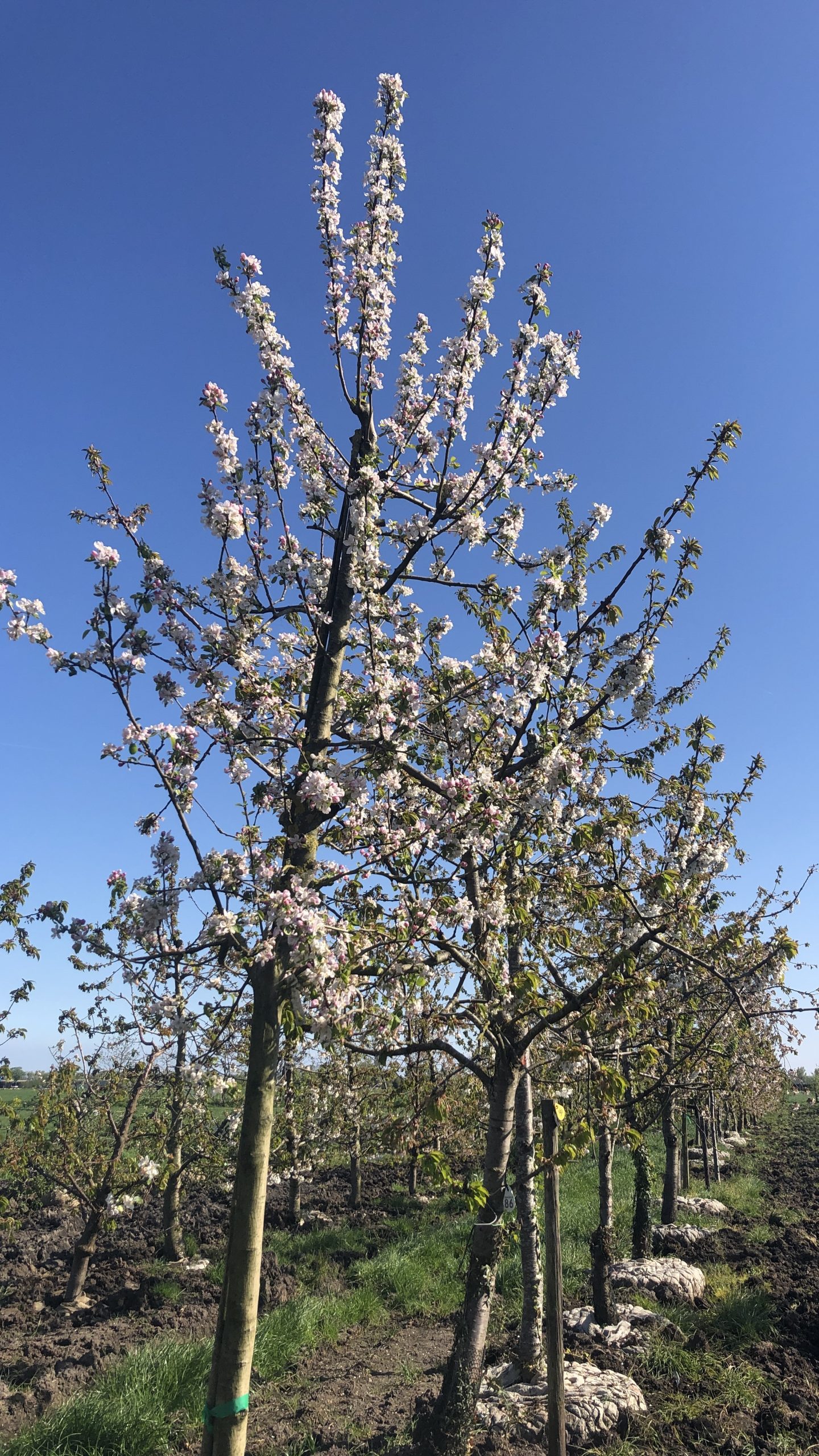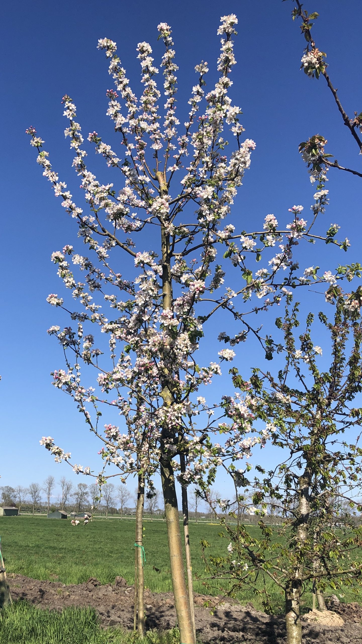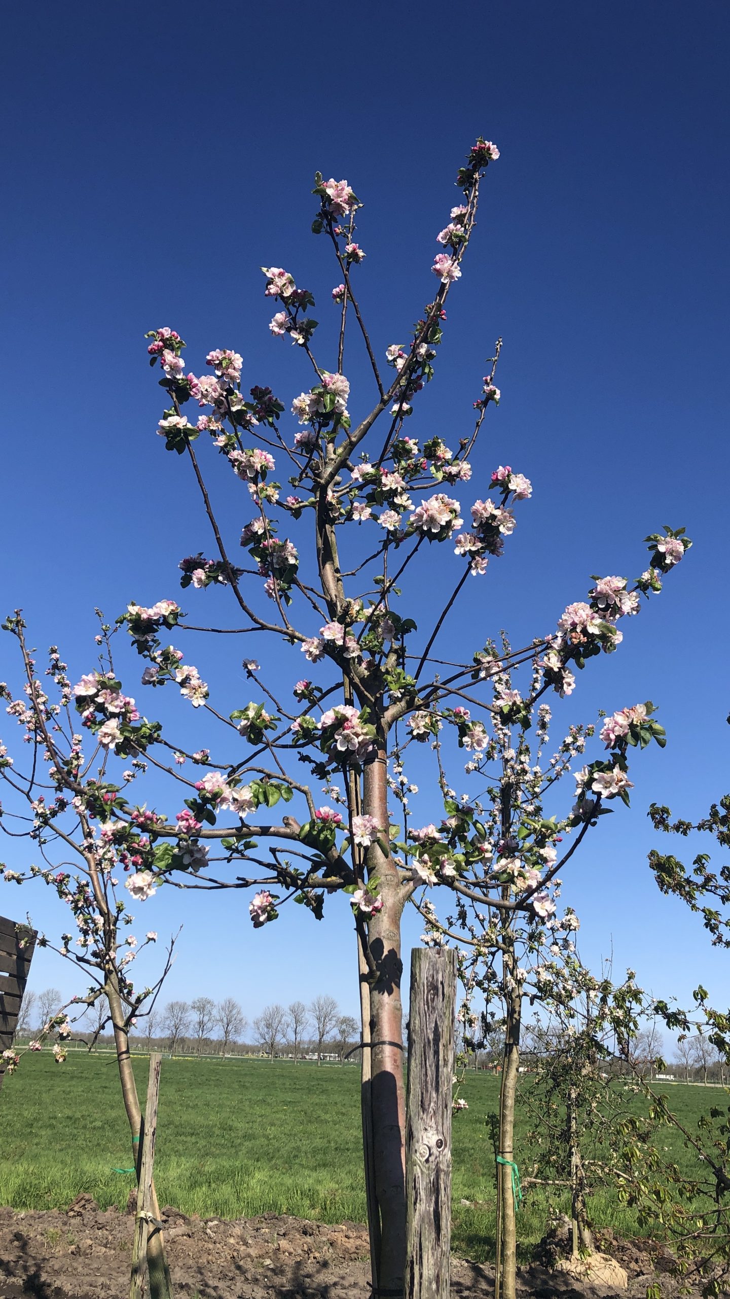 Hoogstam appelbomen, diverse rassen, ca. 15 jaar oud Wij hebben onze voorraad aan hoogstam appelbomen weer aangevuld met diverse rassen: ​Dijkmanszoet, Zoete potappel, Cox, Ida red, Gloster, Stark Early, Goudreinette, Elstar, en vele meer. De appelbomen zijn nog iets smaller qua formaat en hierdoor ook voor transport door smallere doorgangen en stadstuinen geschikt.