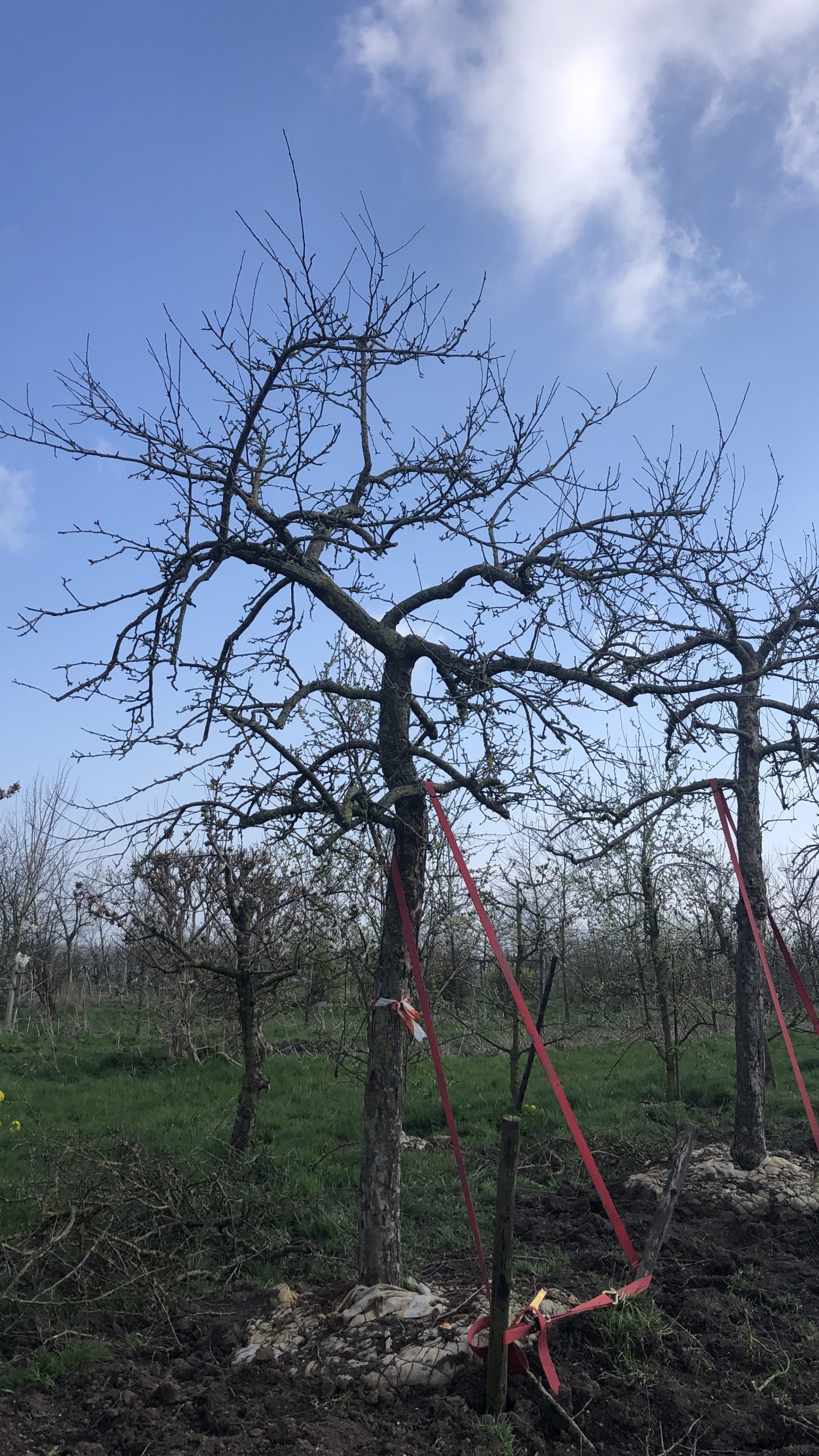 Unicum! Een hoogstam boomgaard met allemaal oude rassen die 45 jaar geleden in de Betuwe aangeplant en nu helaas moet wijken, maar niet zonder behoud van deze een voor een prachtige hoogstam appelbomen! Helaas is de beplantingsplan niet meer beschikbaar en daarmee de ras per appelboom op dit moment (nog) niet bekend. Zodra wij de appels kunnen determineren zullen we dit uiteraard op onze website vermelden. U moet denken aan oude rassen zoals Bramley Seedling, Gravensteiner, Groninger Kroon, Notarisappel, Schone van Boskoop, Sterappel, Zoete Bloemee, Zoete Brederode, Zoete Ermgard, etc.