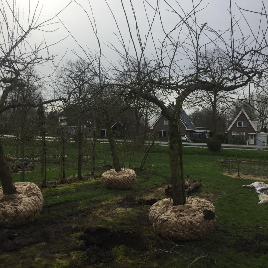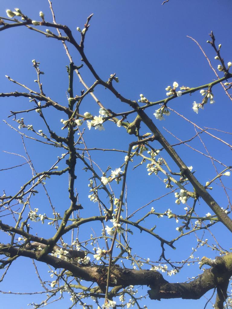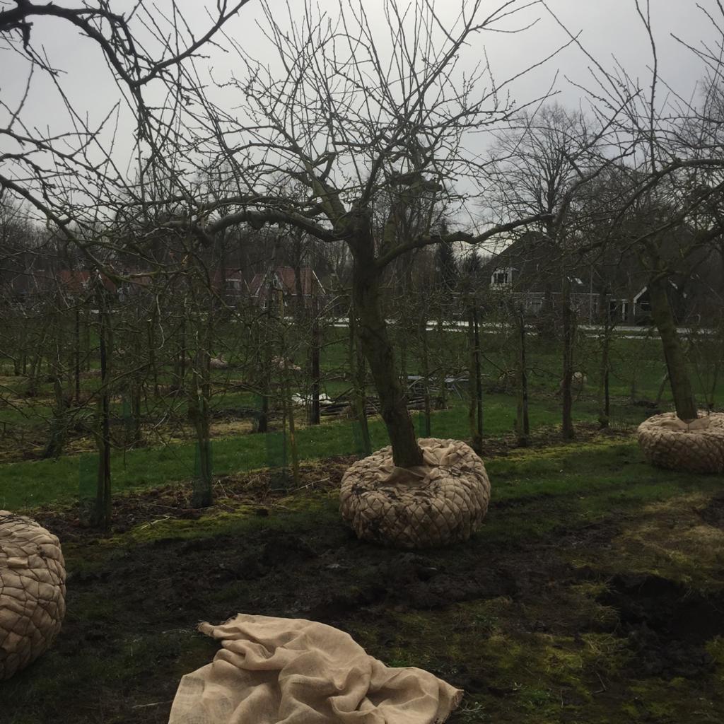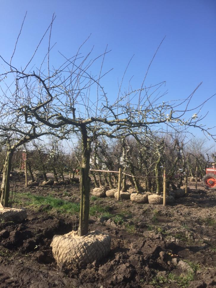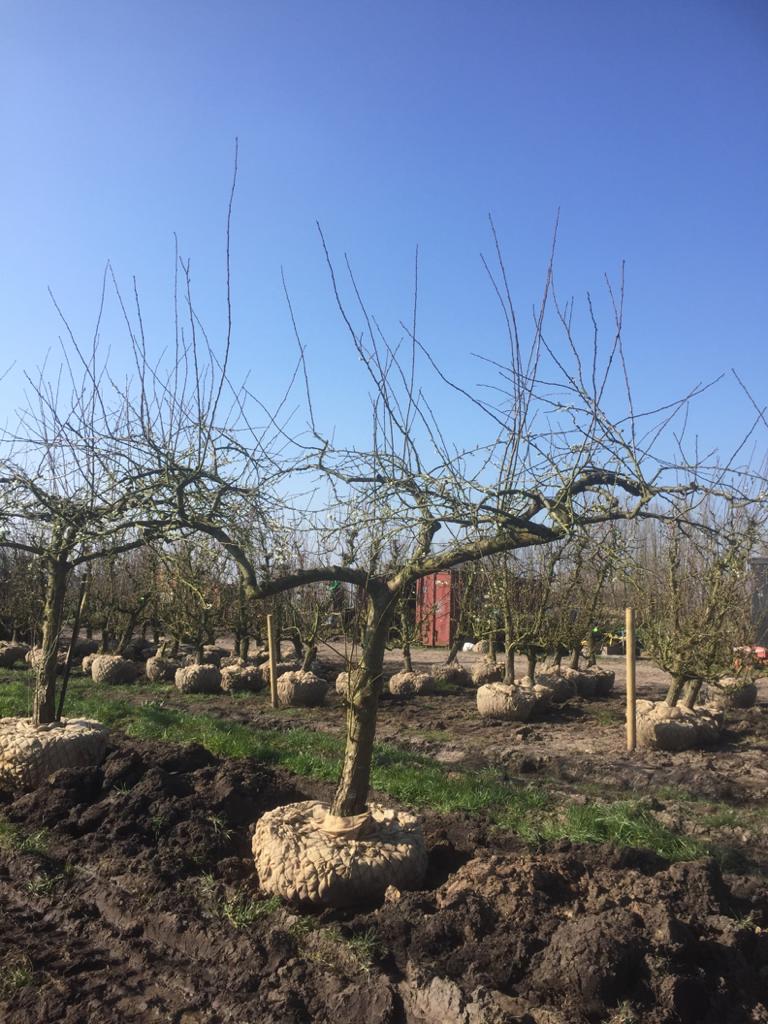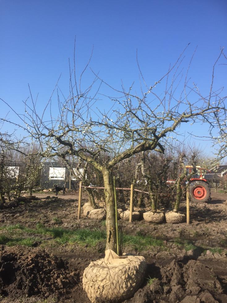 Deze pruimenbomen hebben mooie dikke knoestige stammen.
